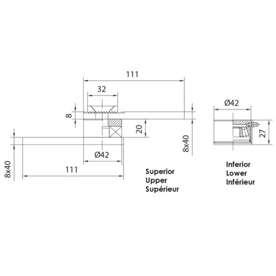 The upper part of the pivot hinge has grooved splints for a better adjustment of the lever. We manufacture this hardware either in steel or in stainless steel. You will find it individually (upper and lower) and in a complete set.