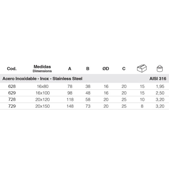 Hinges and butt hinges for doors: Stainless steel drop profile (SS 316) With stainless steel washer.